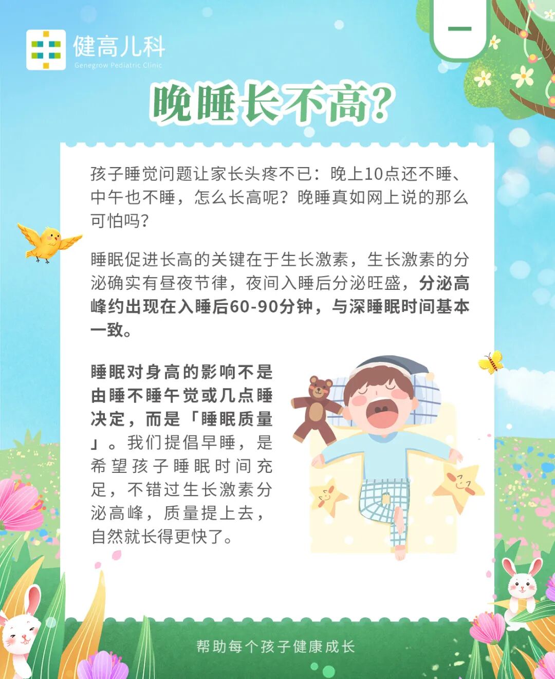 2025年05月09日📈身高:生长激素分泌高峰出现在夜间入睡后60-90分钟,建议孩子早睡,保证充足的睡眠时间不错过分泌高峰。